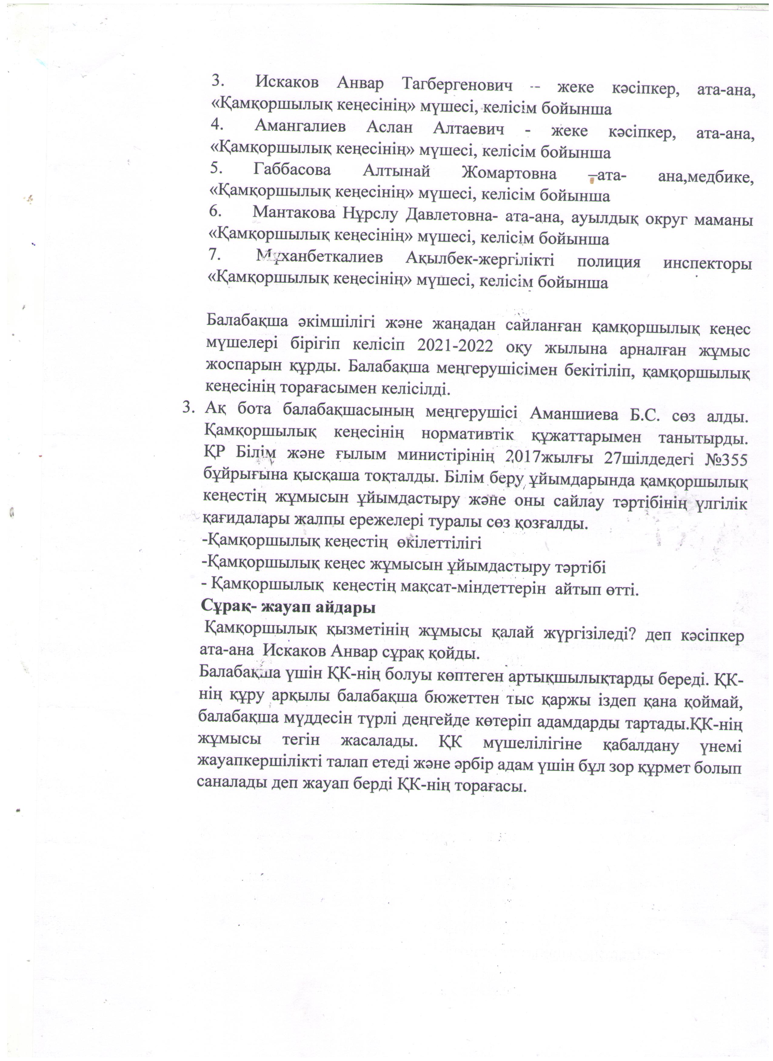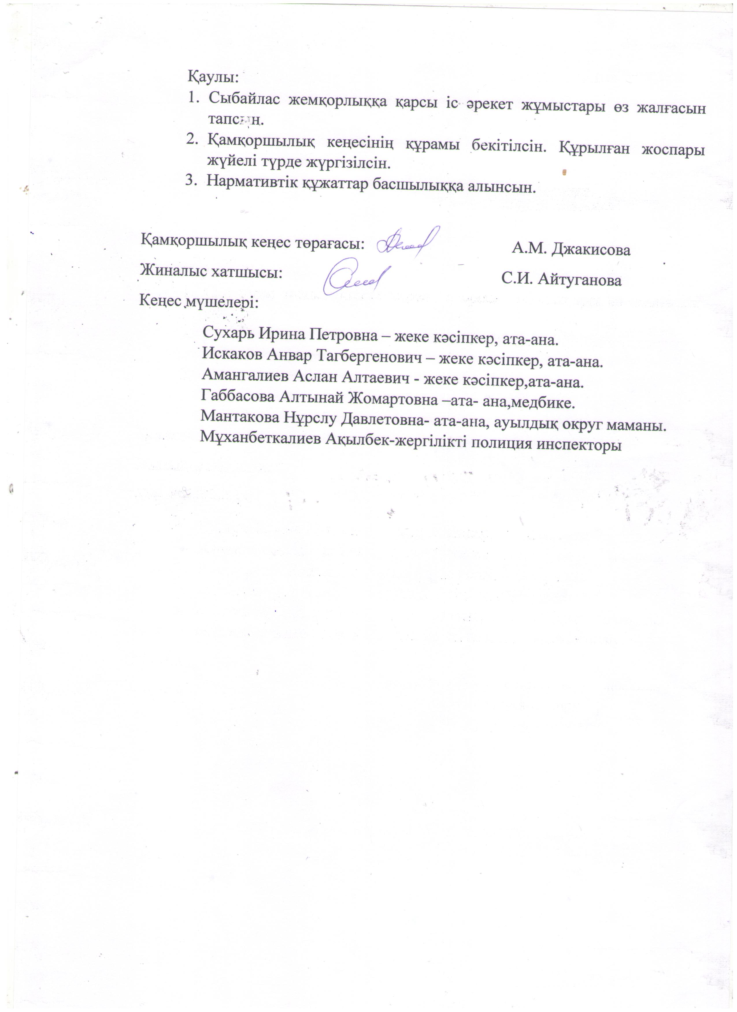 Педагогикалық кеңес хаттамасы