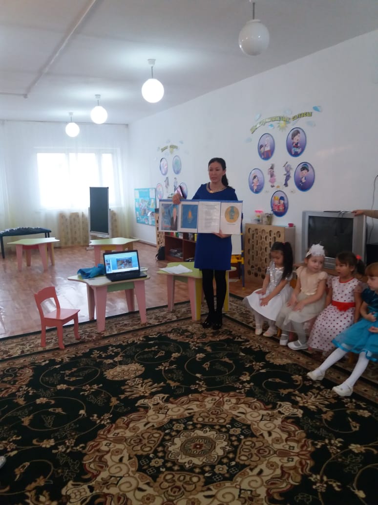 Мақсаты:Балаларға еліміздің Президентін,рәміздермен таныстыру.Өз отанының туған жерін сүюге,қорғауға,сақтауға құрметтеуге тәрбиелеу.Мәнерлеп тақпақ айтуға үйрету.